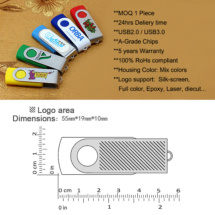 热销 Custom Logo 2.0 3.0 Swivel USB 闪存盘 Usb Stick Pendrive 128MB 1GB 2GB 4GB 8GB 16GB 32GB 64GB 128GB
